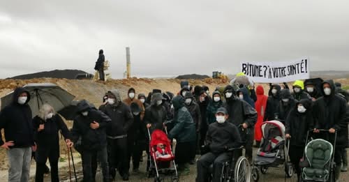« Les “Collectifs sans bitume” estiment que l’eau, l’air, les sols et les personnes dans un rayon de 10 km autour de chaque usine, seront impactés. « Les populations sont inquiètes, parmi lesquelles il y a des femmes enceintes, des nouveaux nés, des personnes porteuses de handicaps, de maladies graves et/ou chroniques, des personnes âgées, des agriculteur.ices, en bref toute une population qui vit et travaille ici », affirment-ils dans un communiqué de presse »